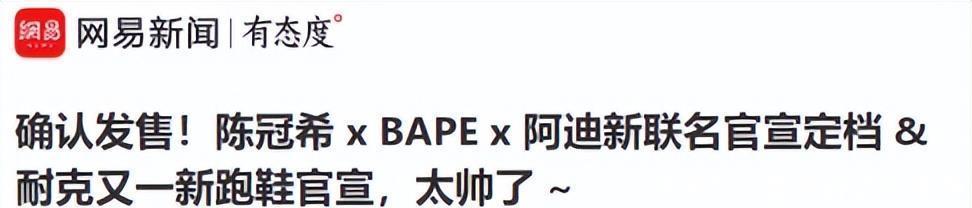 部分参考资料:百度百科|陈冠希网易新闻|确认发售!陈冠希 x BAPE x 阿迪新联名官宣定档 & 耐克又一新跑鞋官宣,太帅了 ~中华网|陈冠希回应本山化 坦然接受自然老化